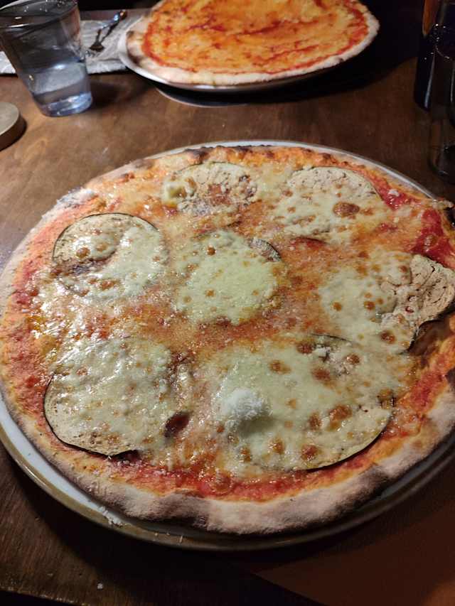 - Salsa di pomodoro, fiordilatte, melanzane e parmigiano