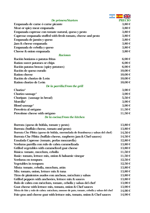 9/10Great find as far as real argentinian place in Madrid. It has a very home touch, the owner is also the chef, which is wonderful. She is very personal in the service and that was fantastic.