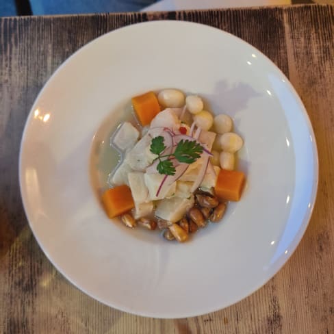 10/10A fantastic dining experience from start to finish. The service was quick, informative, and very friendly. Their Pisco sour is the best ever, and the oysters with leche de tigre were magical — fresh, meaty, and enhanced by the spicy topping. We also enjoyed the knife clams with a warm and spicy sauce, which were delicious. The grilled ox heart completed our starters, being very tender and tasty. Several ceviches followed, all of which were delightful, with the Lima-style sea bass and corn standing out for me. The main course, a sweet and sour fish escabeche, was unbelievably tasty and beautifully presented. It was an amazing gastronomic journey featuring classic Peruvian dishes with innovative presentations.
