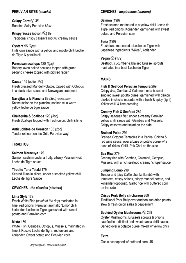 10/10The vibrant flavors at the Peruvian restaurant were unforgettable, with perfectly seasoned ceviche, fish, octopus and a variety of drinks and dishes that felt like a journey to Peru. The warm, attentive staff and cozy atmosphere made the experience truly special. We had Bloody Tiger, Chicha Santeria, Pisco sour to drink and the ceviche, oysters, octopus and fish to eat. And oh my, best perfectly well made cocktails and dishes I’ve ever had!!