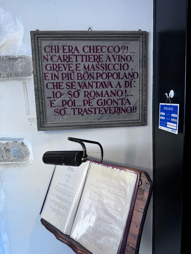10/10The perfect Italian atmosfere with amazing dishes and unforgetable memories - this ristorante is a must in all our visits in Rome! Grazie Checco er carettiere!
