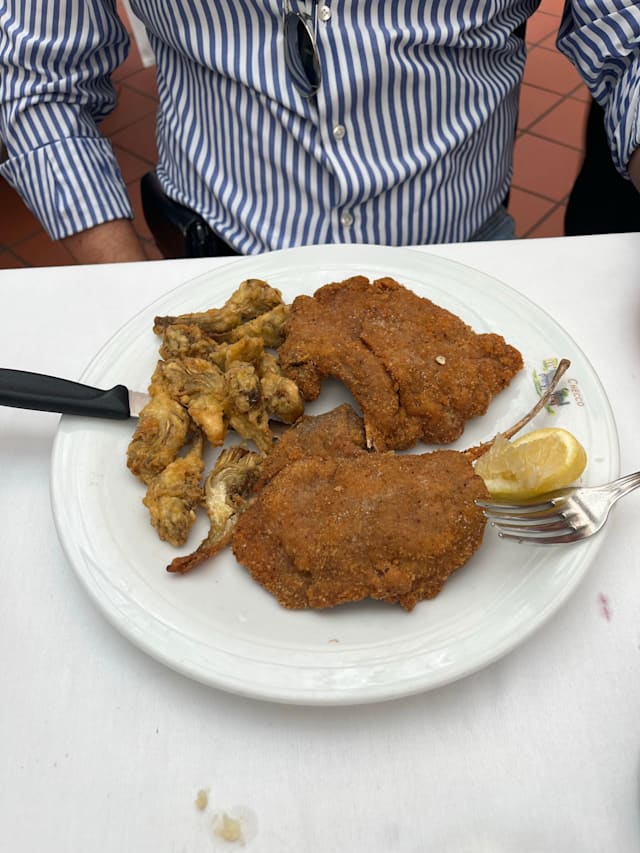 4.5/10Most disappointing Resturant in the whole Italy! Made reservation for lunch for which I had to confirm 4 times and when we go to Resturant no one was there to greet us! Resturant empty, we finally found someone and the sat us in the corner (with reservation yet)! The server brought the wrong wine and had to get his attention to let him know to bring us the right wine! After we ordered the appetizers came in fast, the artichoke was ok and again he disappeared till her brought the pastas as I wanted to order salad as everything seems bland! I also ordered veal scallopini with lemon. We sat there for 30 min never came back to table to see if our pasta was good or not! Meanwhile no sign of my veal.. after 40-45 min another server came in at which time I told him to bring the check. A disaster. Yet the owner of the place helped her friends that were sitting next to us! There are Resturants dine a dozen in Rome stay away from this one! Disaster