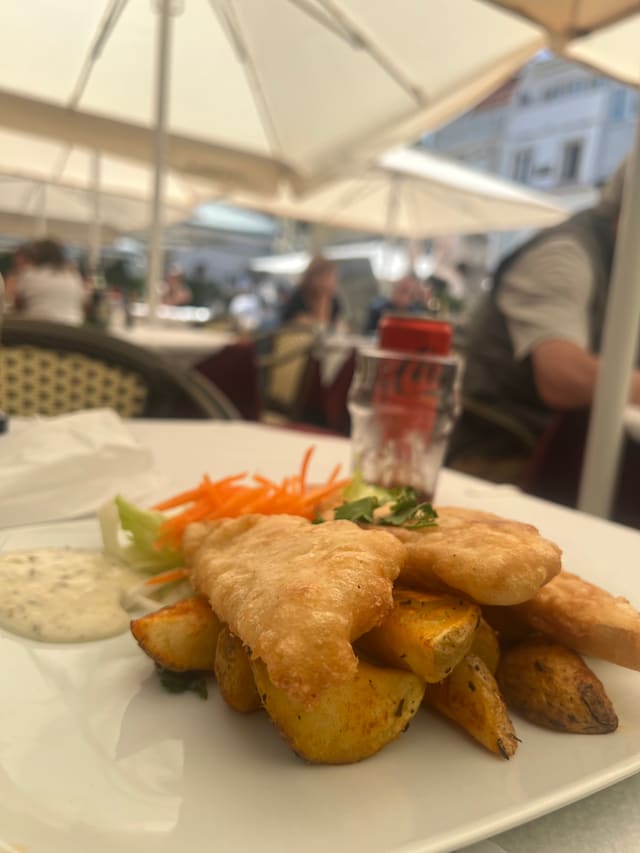 8/10Food was good, employee were overall nice, there was some nice street music that gave a good ambiance. Overall good experience. Downsides were: Pressured by the constant gaze from the waiter. And the pushiness for us to get drinks or expensive items in the menu. Even awkwardness to try to force a tip in the end, unnecessary and mood breaker. But in general, positive experience