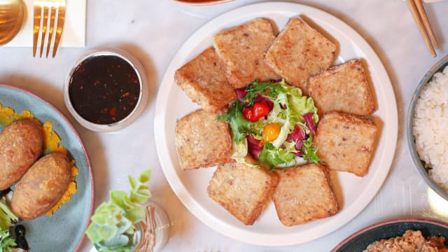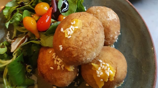 Œuf mollet, tofu, algues, peau de tofu, bœuf, émincés d’oreilles de porc