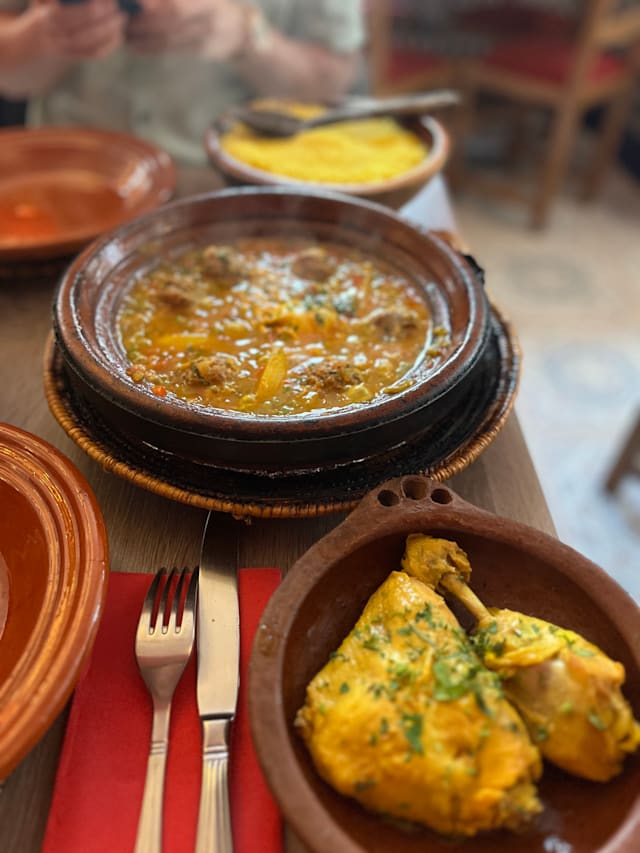 10/10We were craving for food without cream and butter, seeing that we never use them cooking (we are Italian). And it was perfect : we had delicious tagines, with chicken and with lamb. Well spiced and pipping hot! There were not many clients that night, so we had time for an enjoyable chat with the cook and the waiter. It was a perfect last dinner for our champagne tour 😊