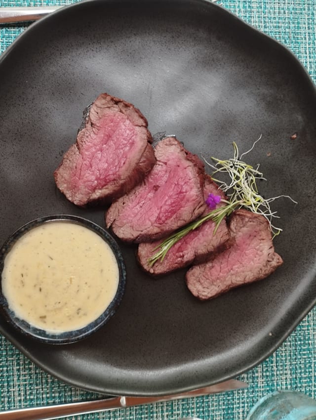 5.5/10Orderd medium rare, got welldone . No ambiance at all. Small portions Only one table a la carte, our table. No different tables hotel buffet and a la cart .