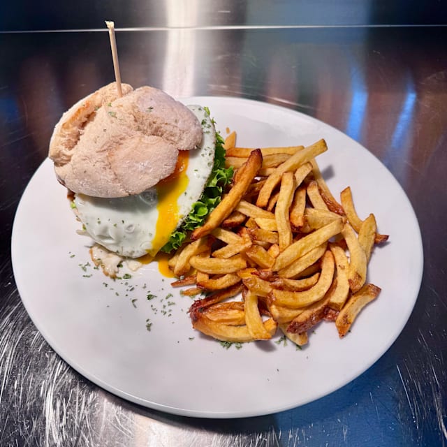 - Croque-monsieur à la portugaise entrecôte de bœuf grillée, saucisse portugaise, sauce maison et œuf au plat
