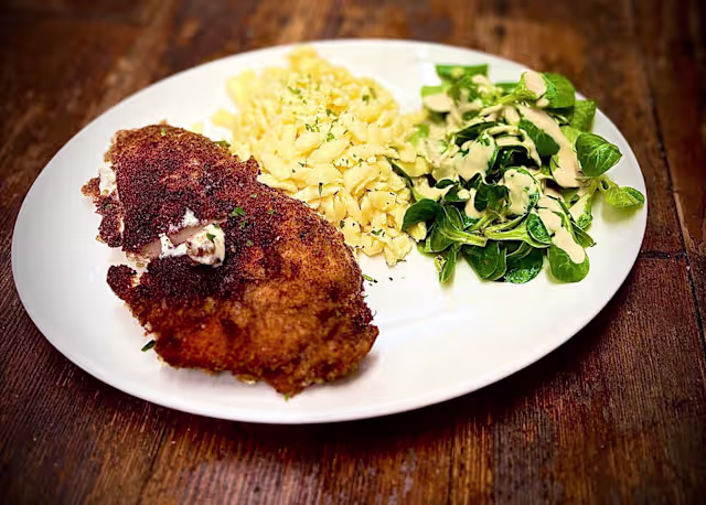 - Mercredi - Cordon bleu, spaetzle et salade, mousse au chocolat