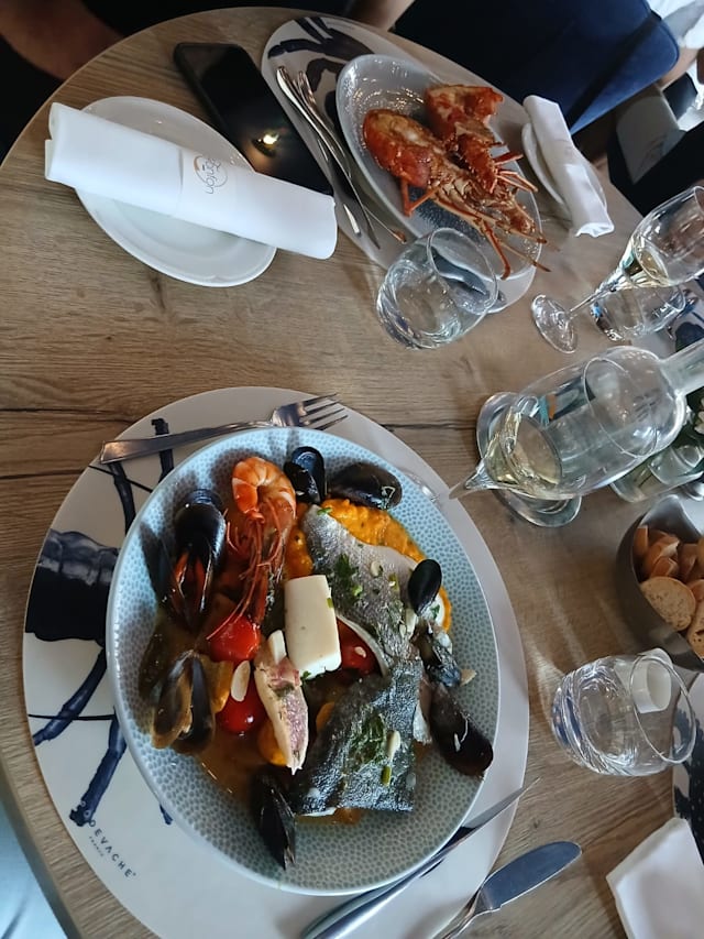 9.5/10We came here for dinner and had a Bouillabaisse and one meat dish with vegetables and lamb. Both dishes were delicious and very well served. The Bouillabaisse is expensive but you can eat as much as you can and the quality of the fish is very good. We also recommended the wine rosé. The service was very attentive, and the place where the restaurant is located is very pretty and worth visit