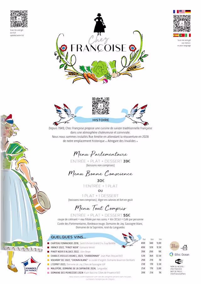 Chez FrançoiseHello, Thank you so much for your kind words! We're absolutely delighted to know you enjoyed the atmosphere and our team's hospitality. Your recommendation means the world to us, and we can't wait to welcome you back soon. Warm regards, Pascal MOUSSET - Le patron -