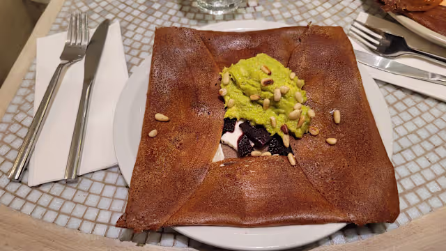 - Guacamole maison, fromage de chèvre, betterave rôtie, pignons de pin