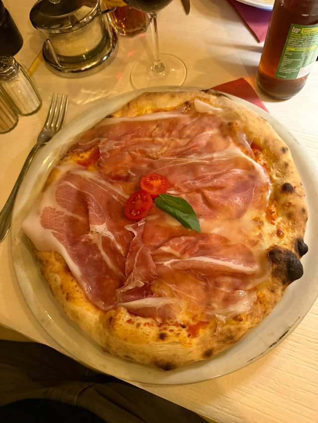 - sauce tomate, tomate fraiche, mozzarella, rucola, jambon de parme