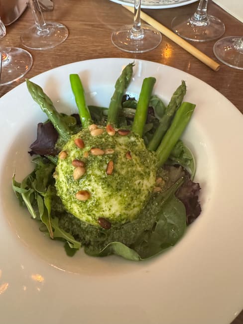 9.5/10In what is a modest space, we enjoyed a terrific meal crafted with finesse. The appetizers were wonderfully flavorful and delicate. (Eggplant caviar, burrata and ceviche of sea bream.) our entrees were equally delicious both the tuna and veal chop. Accompanied by delicious and perfectly cooked vegetables. Dessert was great as well the mango charlottes and pistachio sponge cake. Service was friendly.