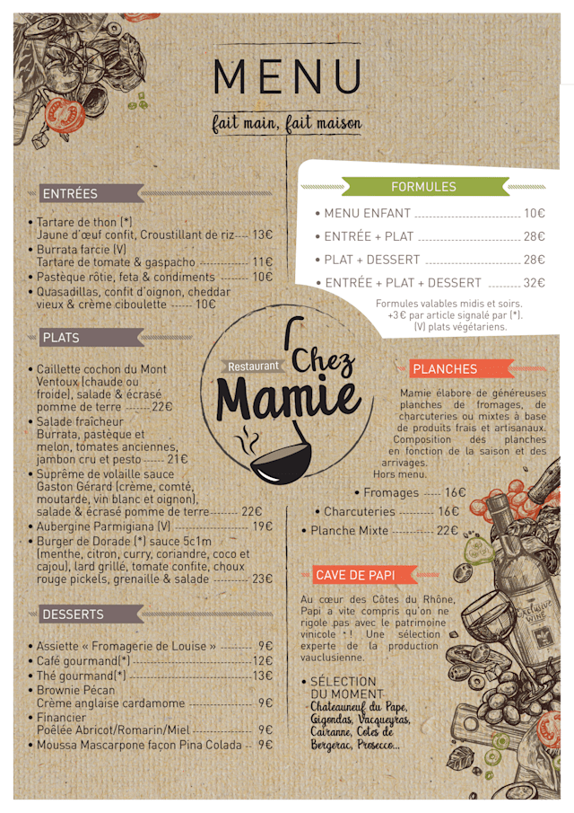 9.5/10Our hostess was so friendly and personable but more importantly, the food was delicious. The menu is limited but for our dinner, everything we had was enjoyable and very reasonably priced. Merci “Mamie” for a lovely evening in Avignon. We loved the “Grandmother Skis” which is effectively a charcuterie with melted cheese (perfect for the moment). We recommend it.