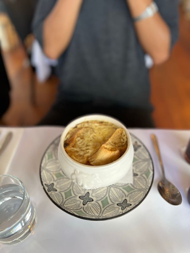 7.5/10The French Onion soup was not freshly made upon order. We noticed that it was ladled out from a pot into the bowl and put into an oven (which could be a microwave).
