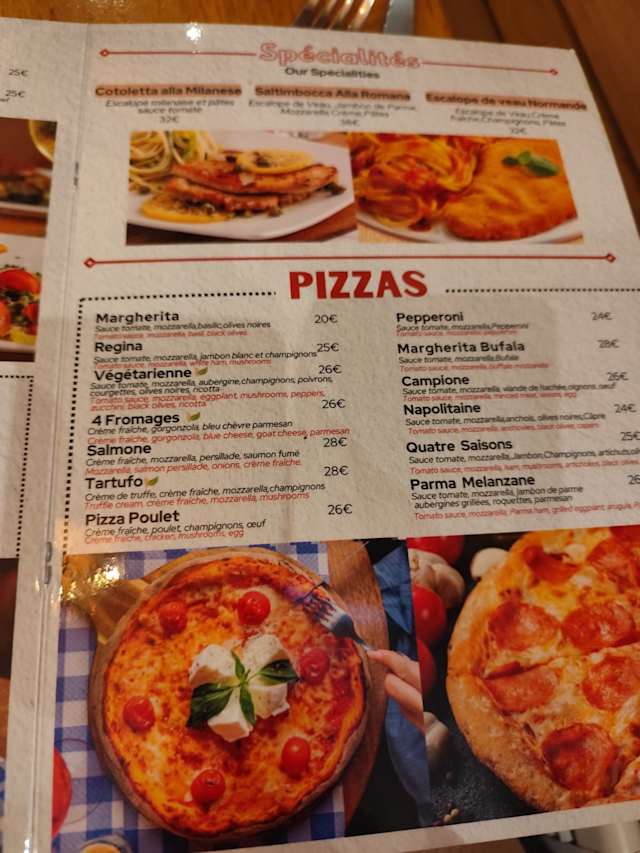 4/10A complete tourist trap. This place has nothing in common with an Italian restaurant, no matter how you look at it. The dishes are cheap imitations of the original. The onion soup is a prime example. It's definitely the worst we had in Paris, and the worst we've ever had. It's a vague broth, probably made from some pre-made cube, with onion slices and something pretending to be croutons. I won't even mention the lack of Gruyère cheese, but even if it were there, it would probably burn with embarrassment swimming in that broth. Add to that the astronomical price of 20 euros for a Pizza Margherita (probably the highest price in all of Paris), and all this just to offer a virtual 50% discount through The Fork and perhaps other platforms. It wouldn't be a problem – it's the owner's strategy to double the prices to give a 50% discount on the entire menu, but let these dishes represent something. We ate four different dishes, and all four were a complete waste of our time and money. It was t