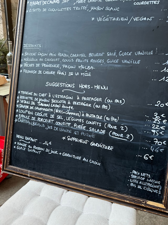 10/10The location in a random back street of the old town of Cogolin sets the scene . The staff are so friendly and helpful ( no language barrier) . The menu is concise and the food is sublime , complimented by excellent and reasonably priced local wines along with a diverse and extensive selection from further afield including some surprising sources. Our fourth visit in less than 12 months and is firmly near the top , if not the top , our local favourites.