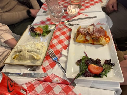 4.5/10Food was good. Pasta, salmon lasagna and pizza all enjoyed. Service was swift. Paulo spoke to us and was friendly. Noisy and chaotic vibe! Way too bright in there! The lighting was soooo bright. Not relaxing or cosy as an authentic Italian should be.