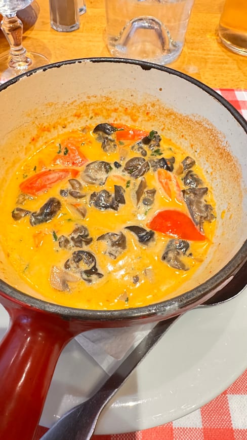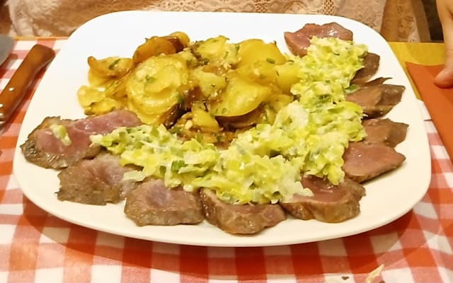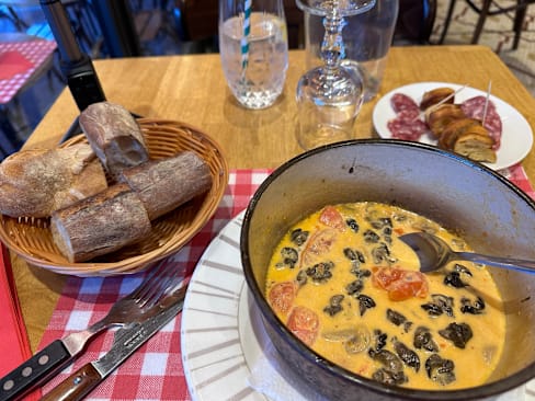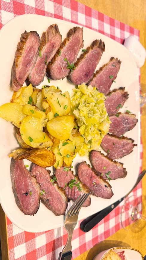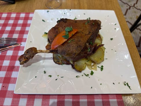 8/10The starter of snails in a cream sauce with tomato, garlic and mushrooms was delicious. My main was a wonderfully cooked, seasoned and sliced duck breast with creamed leeks and sauté potatoes. The service was slow and could have been a bit more attentive.