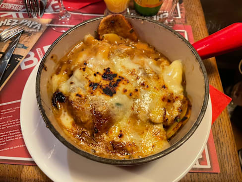 5.5/10We chose Chez Papa at Montparnasse because of many previous good experiences… Granted the last one was four years ago. We had a reservation for seven people at 7 PM. The restaurant was empty when we arrived, but it took a good 10 minutes for anyone to come to our table for drink orders/menu suggestions. The server was lackadaisical at best, no matter how nice we were or how we tried to engage, he just refused to really engage. The food was quite good, so I don’t want to take away from that, but if that had been my first time there I would never go back… The cherry on top was when we left a 15% tip, and the server came back and said “what do I do with the extra change”, I replied “ it is for you”, he never even bother to say thank you… As I said, I will never bring people back here… Embarrassing!