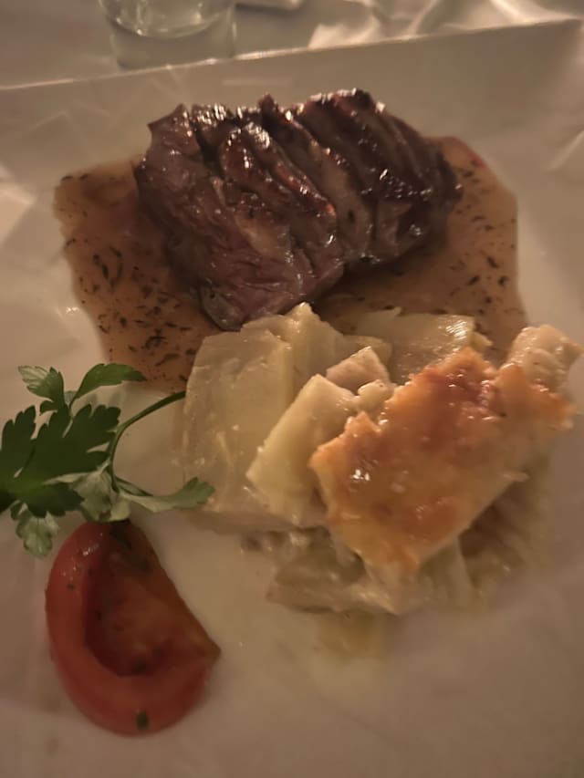 5/10This was the worst dinner I ever wrote about! Food was terrible, compared to hospital food... First we ordered duck patte, worst ever, then we decided on cheese platter rather than individual cheese order, and walla.. plate came with literally 4 thin pieces of ordinary cheese, and scooped of jam. The main meal was dolmenico steak, that came like a joke, thin like I've never seen it before with scooped of sliced and boiled potatoes.. no garnish, no nothing. The second meal was code fish with white rice.. plain, cooked probably on the steam, plain rice, not garnished or even tried to decorate it. So, if I can give -10 on food, that would be the evaluation. The music was so and so.. as this was not the main performance day. If you are to order just appetizers, the music charge is 15euros per person. Very disappointed with the evening that was supposed to be the highlight of the trip.
