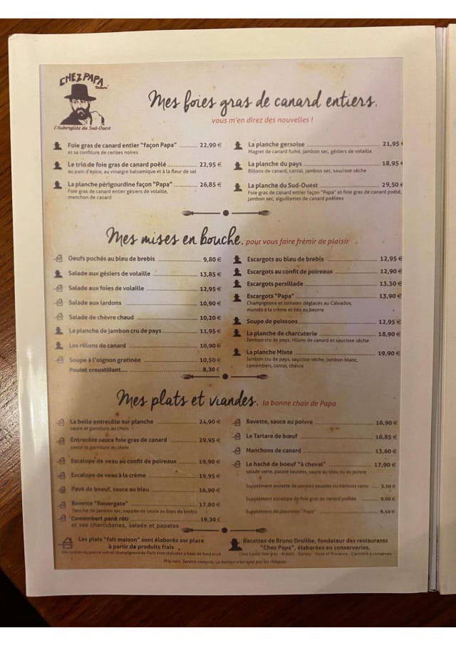 10/10Chez Papa never disappoints. Generous portions, tasty and well priced. Salads are a favourite and they are not small. The staff were very nice and helpful. Brings you back to the Sud-Ouest!