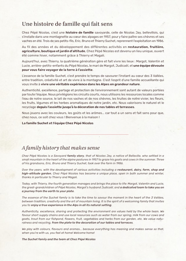 Dear Victoria, Thank you very much for your feedback! We’re delighted to hear that the welcome, the food, and the service lived up to your expectations. Your satisfaction is our greatest reward. We look forward to welcoming you back to Chez Pépé Nicolas ⛷️🍴