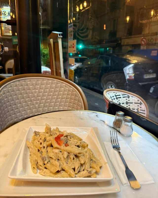 Hoummous, moutabal, tabouleh, jawaneh, makanik, 1 pièce kebbé, 1 samboussek viande, 1 pièce falafel. Servi avec la crème à l’ail, la crème de sésame et le pain pita.