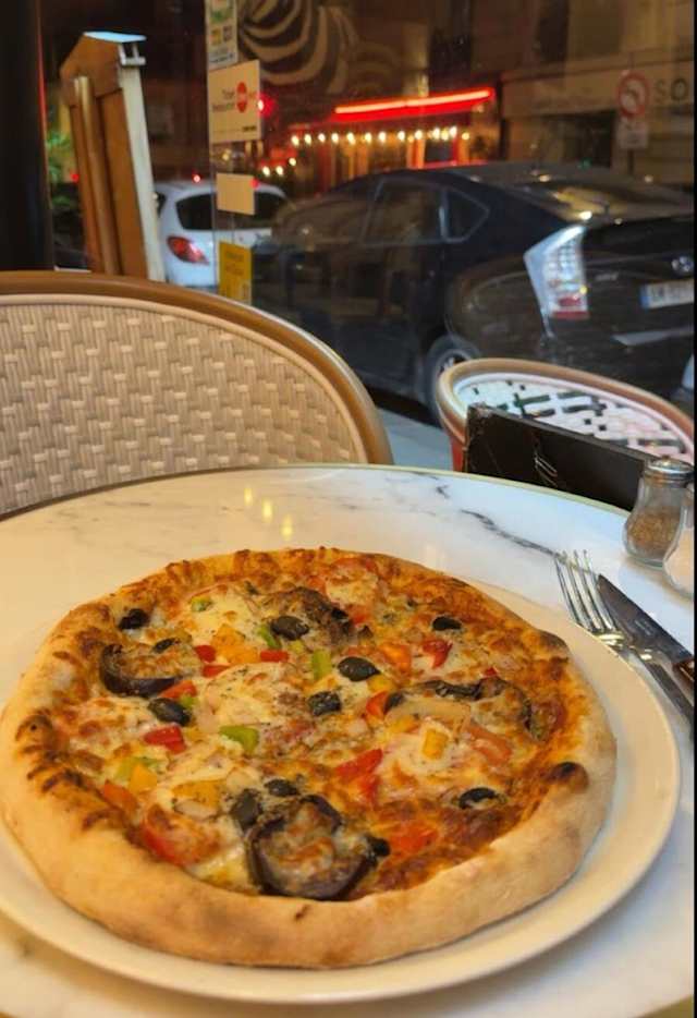 Aubergines sautées, poivrons verts, rouges et jaunes, tomates, pois chiches, l’ail, oignons, sauce tomate et des épices. Rôtie à la façon syrienne servi avec le pain pita.
