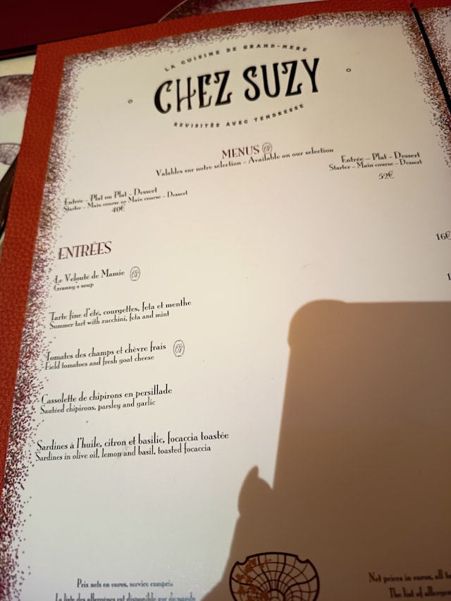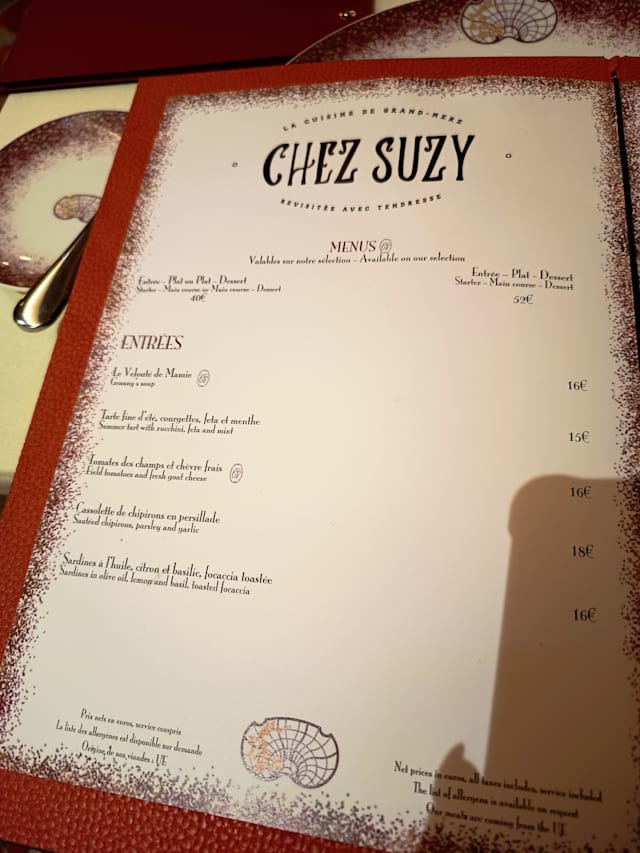 Hello Mr Hull, Thank you for your interest in our restaurant Chez Suzy and taking the time to write us. We greatly appreciate having you at the restaurant and hope to see you again when you will visit Paris again !