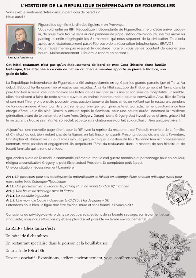 I came across this place while visiting Calanque Figuerolles and made a reservation to enjoy dinner there. The setting is out of this world and we were greeted warmly by a very nice man who took us to our table and after seeing that our French was not the best, he generously explained the cocktail list and took our order and delivered them himself. Our waiter left a lot to be desired. He was cold and when asked for menu recommendations he could not be bothered. Thankfully the host checked on my companion and I throughout the meal and as our waiter was not to be found. It is high season...we got it but still at such a nice restaurant it would be nice to be asked how our food was, if we would like more wine.... One a high note, we LOVED the ceviche. Our lobster ravioli and the lamb was too heavy for the evening but were also tasty. I would return for the scenery, the cocktails, the wine and the sweet host staff!