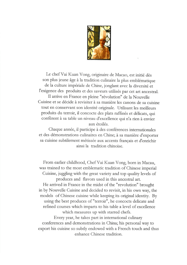 10/10There are few places on the planet that deliver such an incredible dining experience. Chez Bong is one of those places. In planning my trip to Paris Chez Vong was the only place that I did not want to miss while I was here. Do yourself a favor and go for a meal you will never forget.