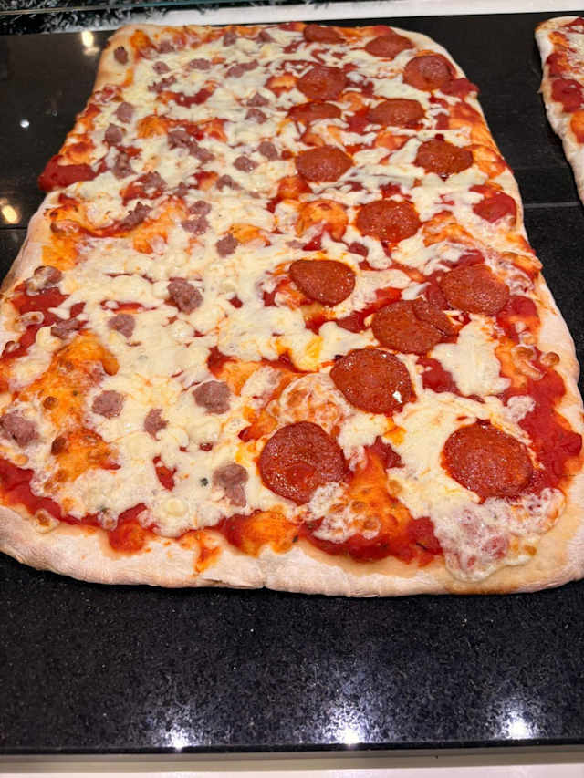 - Pomodoro, mozzarella, salsiccia e peperoni