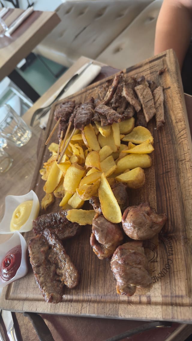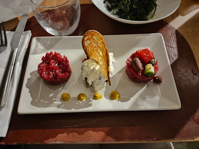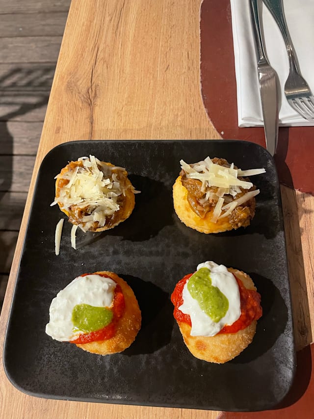 5/10Good staters. Out of 4 main meat dishes, 2 polpette and 2 ribeye, only 1 was properly medium. 3 were under cooked. All 4 meat cutts tough to cut and chew. Grilled vegetables delivered as an unrecognisable mash. One side was missing. Wine recommendation consisted of sale statistics no knowledge of which could pair well with the meal. Service was slow and forgetful but kind with a smile. Waiter could not distinguish the plates and had to get the cook out to tell one from the other. A spoon with dessert tasting was offered on the house and the bill was adjusted by 3% after the 20% promotion.