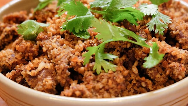Pollo a la pimienta de sichuan con brotes de frijol mungo