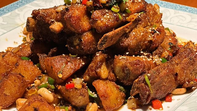 Cerdo crujiente en salsa agridulceicerdo guoвао)