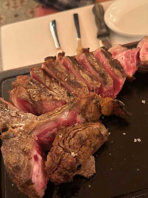 6.5/10Antipasti and pasta were great. We ordered the tartare to share and it was amazing. My wife ordered the gnudi and I had the gnocchi. Both were excellent. We ordered the chianineria steak to share. However, after several diners who arrived after us were delivered their meat, the server collected our pasta plates and asked if we wanted dessert. I reminded her that we had ordered steak to share, she seemed confused. Eventually a steak was brought out to us but I have no confidence that it was the steak we ordered but we paid for the chianineria. The steak was good but not mind blowing or anything. It reminded me of a great steak from any sort of Ruth Chris level steakhouse in America. If anything, the steak service seems more spectacle than substance. I wasn't disappointed with the meat, it lived up to my expectations. I was disappointed with the service. The food was good but for 180 euro, you can probably find better.