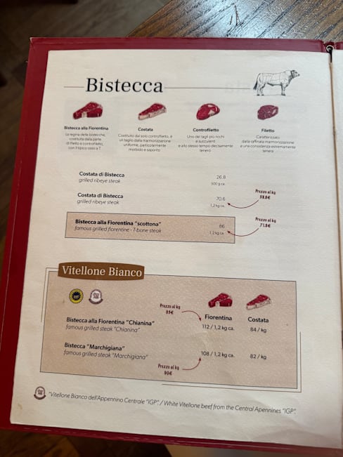 10/10Bistecca alla Fiorentina Chianina was incredible! We came here by the recommendation of a local person, and it was a fantastic selection. The restaurant is quiet and waiters are very nice