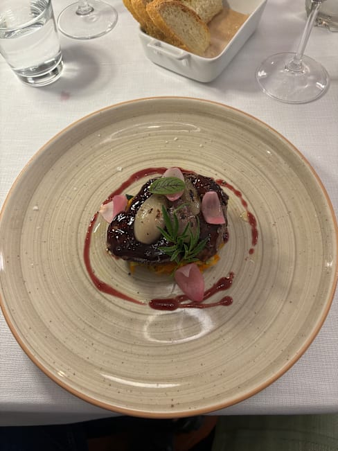 10/10Excellent! This will be the restaurant that I talk about when people ask me about our trip to Italy. We made a reservation and were immediately greeted as we walked up and sat just as quickly. The table was in a covered open-air area. In the evening, the temperature and breeze were perfect for a quiet meal. The staff was friendly, and was great at communicating. The atmosphere was quiet and allowed us (table of four) to have a conversation with ease. The food was amazing! I ordered the deer with vegetables and used the bread to clean my plate (the sauce was so good). I would highly recommend this restaurant, even if it is 15-20 miles away, it is well worth the trip.