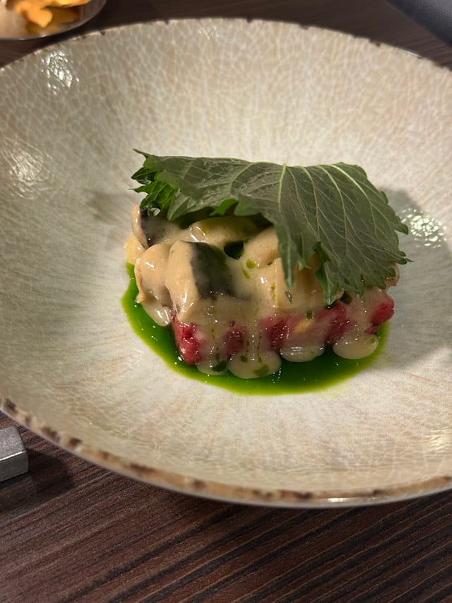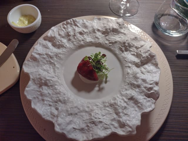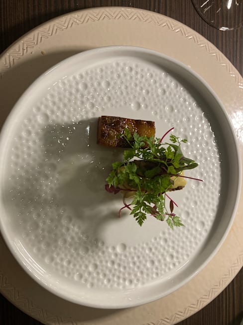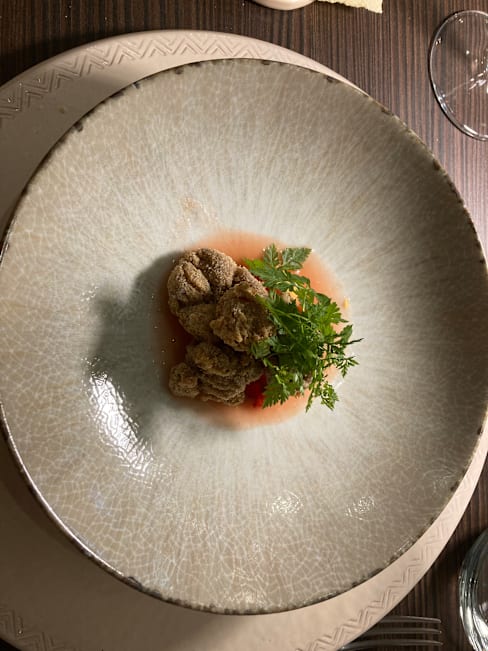 7.5/10+2Overall the atmosphere, services, presentation and wine selection were impressive and very nice. The female sommelier gave us detailed explanations on each wine. The aperitif made with watermelon the way of serving was very unique and interesting, if it was colder, the taste would have been much better. We had a tasting menu, they were all delicious, but almost the half of the dishes were deep fried ones, if there was a cooking method that made the most of the ingredients' natural flavour, we could have enjoyed the variations of the tastes/dishes.