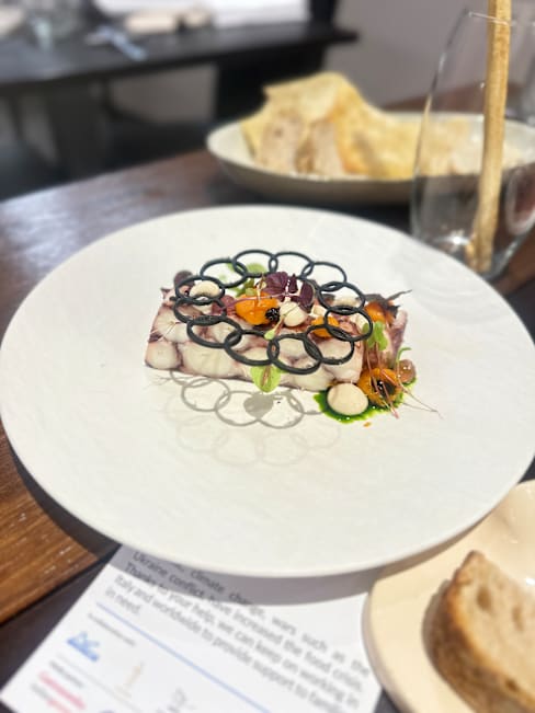 9/10Food was excellent and Barbara, our server, was so upbeat and attentive. The food was excellent and really enjoyed all menu items we ordered. Wine selection was unique and appreciated as well. Took some points off for the ambiance. The restaurant felt more like a shop with bright overhead lights. Dining room was quite warm but after requesting AC it cooled off and became more comfortable. Appreciated interacting with head chef Marina but felt like it took a little bit to come out of their shell! Would recommend adjusting the restaurant lighting to make it a more relaxed atmosphere, but other than that we really enjoyed our food.
