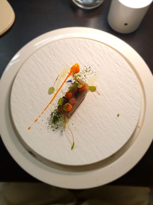 7.5/10+2Overall the atmosphere, services, presentation and wine selection were impressive and very nice. The female sommelier gave us detailed explanations on each wine. The aperitif made with watermelon the way of serving was very unique and interesting, if it was colder, the taste would have been much better. We had a tasting menu, they were all delicious, but almost the half of the dishes were deep fried ones, if there was a cooking method that made the most of the ingredients' natural flavour, we could have enjoyed the variations of the tastes/dishes.
