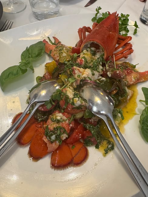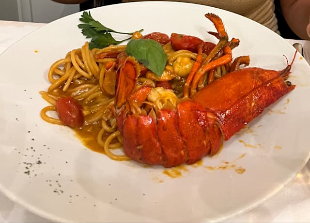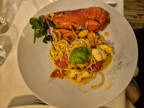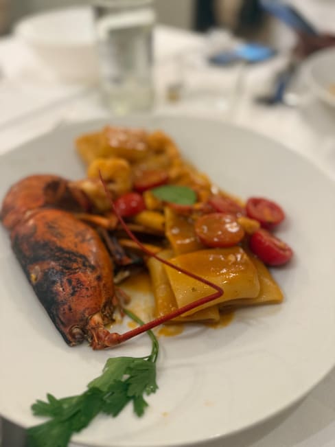 5.5/10A €30 lobster pasta. The pasta is raw. The sauce is so salty that it tastes bitter