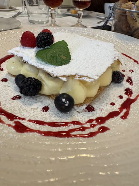9.5/10Food is very good in every aspect: ingredients, recipes, preparation and presentation on the plate. Wine list offers sufficient choice at decent prices. The service team is, most evidently and pleasantly, trained, motivated and attentive; it could have been even perfect by removing the plates of a course only when BOTH guests have finished. The interior of the restaurant convinces with its unobtrusive and pleasant elegance. All in all, a clear recommendation.