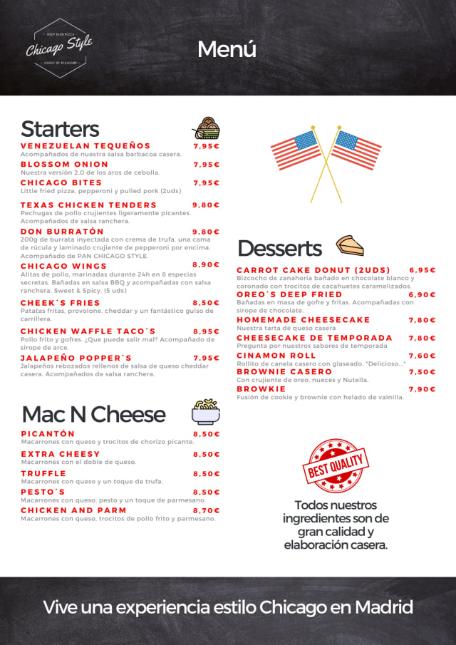 According to TheFork users, Chicago Style Pizza - Maudes is one of the trendiest restaurants in Madrid at the moment.