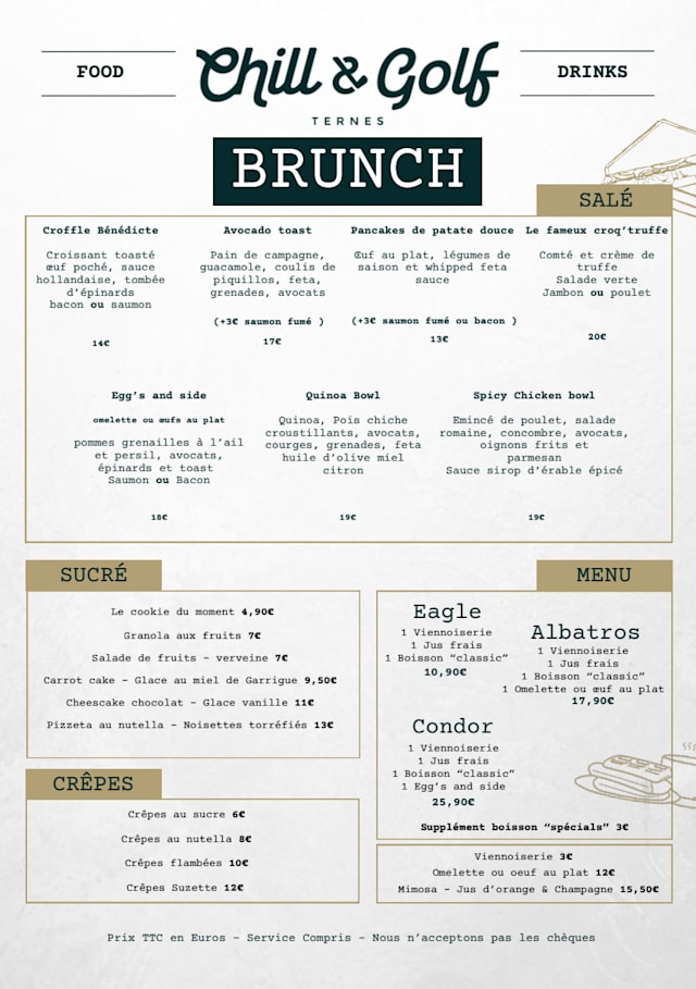 How is Chill & Golf rated? Can I reserve at Chill & Golf right now? What type of cuisine is served at Chill & Golf? Does Chill & Golf have a terrace? Is Chill & Golf good for families? Is Chill & Golf open on Sundays?