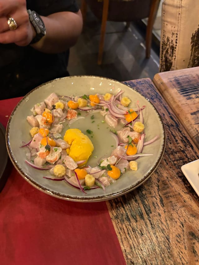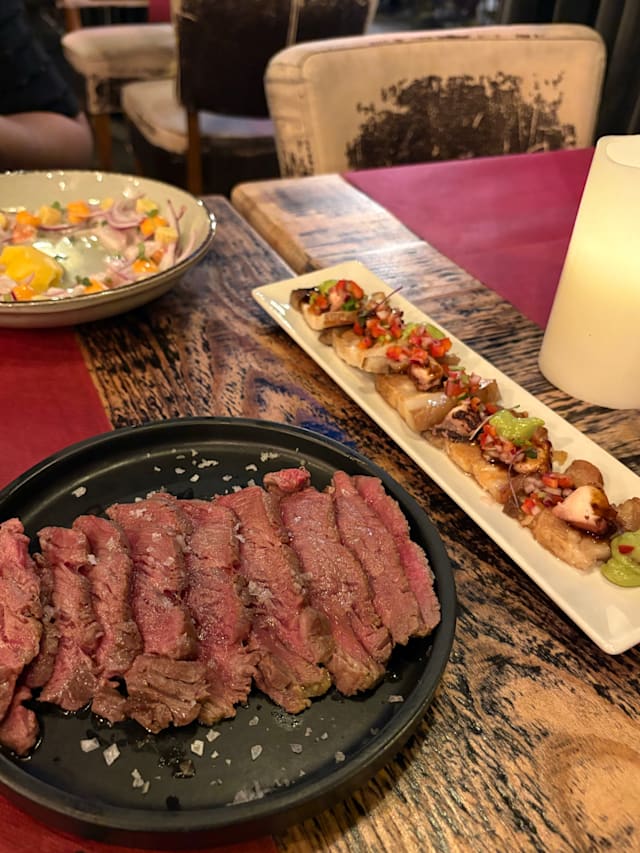 2.5/10Very disappointed by the serving size as three tapas sized Bao with poorly used guacamole and dry pork cost 15€. One server was busy with his phone and another was busy chatting with the kitchen and a few locals, too busy to get the food out in less than 25 minutes.