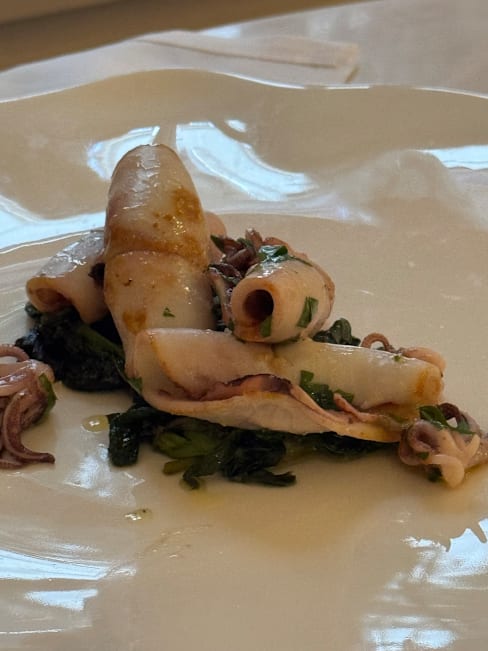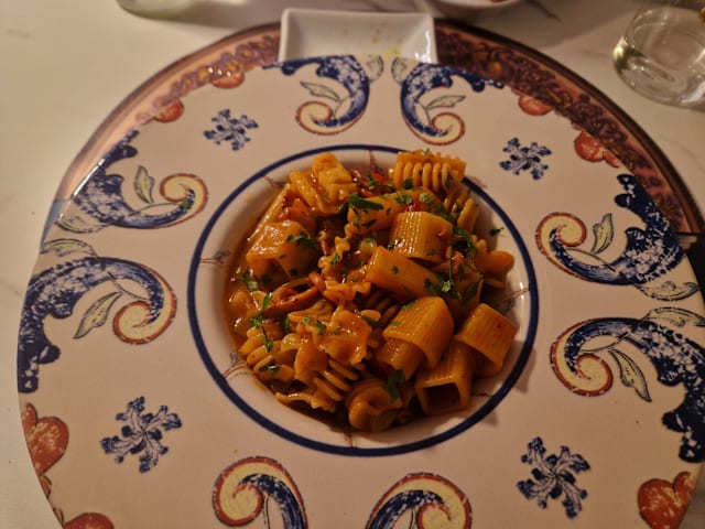 10/10Intimate, comfortable, elegant vibe. Stefano Chinappi greeted the three of us as soon as we were seated and we made the good choice to allow him to choose our menu for the evening (menu a sorpresa). The mackerel tartare, salmon sashimi with baby strawberries, roasted octopus, mussels on the half shell, red snapper in a light tomato sauce and tiramisu were the most creative, delicious and memorable of our dishes. Expect to pay for the imaginative menu, quality of the food and the overall dining experience. Our dinner was just under 400 Euros without wine and before tip. Well worth the price for a unique dinner in the eternal city.