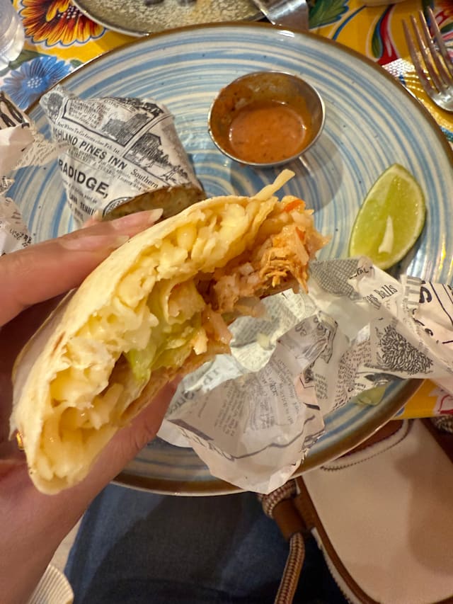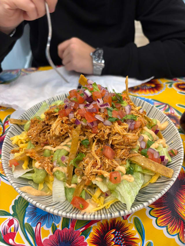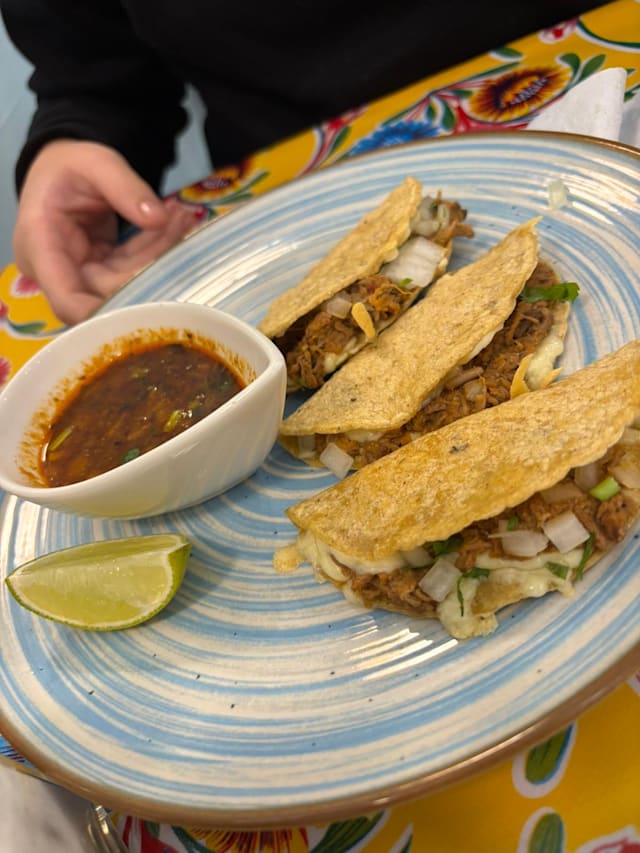 6/10The nachos were fresh and nice, my partner loved her birria quesadilla but the vegetarian burrito was lacking. There was hardly any rice or vegetables in the burrito as you can see in the photo. The portion sizes were also really small so without the 50% discount I wouldn’t have been happy paying those prices. The music was also very loud so the waiter couldn’t hear us, I had to recheck the order with the second waiter and they had missed my partners food completely due to him not being able to hear us. The service itself was quick and the staff was very pleasant, food was mixed, service was mixed, better for a lunch spot rather than dinner.