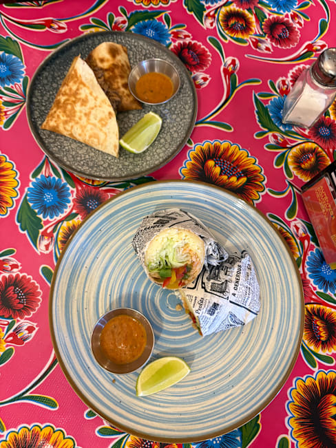 6/10The nachos were fresh and nice, my partner loved her birria quesadilla but the vegetarian burrito was lacking. There was hardly any rice or vegetables in the burrito as you can see in the photo. The portion sizes were also really small so without the 50% discount I wouldn’t have been happy paying those prices. The music was also very loud so the waiter couldn’t hear us, I had to recheck the order with the second waiter and they had missed my partners food completely due to him not being able to hear us. The service itself was quick and the staff was very pleasant, food was mixed, service was mixed, better for a lunch spot rather than dinner.